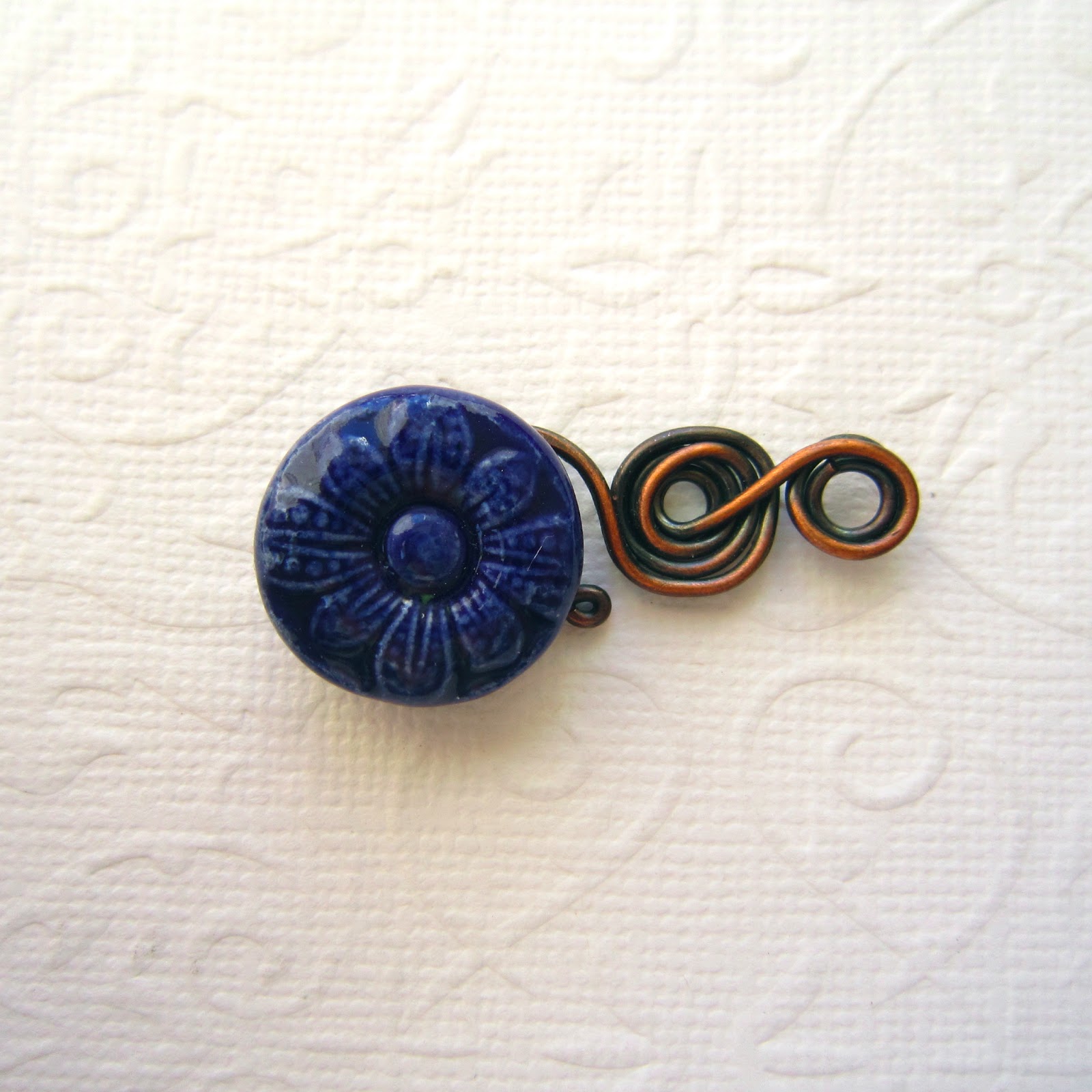 I wired the focal and then created a chain with the bronze rings I contributed to the challenge (plus some extras since I was fortunate enough to have some!) and more of the Vintaj chain. I added a length of finer chain to the focal and hung the bronze charm from this. At this point it became a question of how much more I embellished the necklace. I wanted to keep the symmetry so I couldn't work the clasp in other than at the back which seemed a waste so I used a simple hook with another of the bronze rings. I did play around with more dangles to the front but I'm a 'less is more' kind of person so in the end I settled for just two blue drops to highlight the focal. It does have something of a chain of office about it but I think I like it none-the-less...see what you think.
